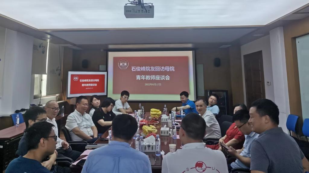 1982级院友、龙蟠科技集团董事长兼CEO石俊峰受邀回访母院,开展青年教师座谈会。学校校友总会秘书长、校友工作办公室主任李劲松老师、院长张晓兵教授,学院王玉枝教授、郭栋才教授及8位青年教师代表参加此次座谈会,座谈会由学院党委副书记潘刚峰老师主持。
