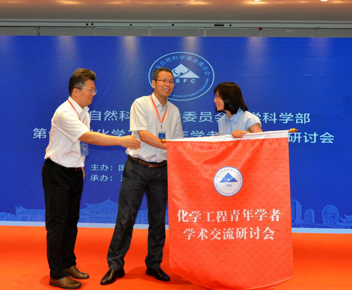 研讨会闭幕式由任其龙院士主持,各分会场主席分别就本会场的报告与研讨情况向大会进行了总结和点评。经评委会评选,共有8位青年优秀学者获得本年度化学工程青年学者学术交流研讨会优秀报告奖。湖南大学科学技术研究院院长尹双凤教授代表承办高校就会议组织情况做了总结报告,并对国家自然科学基金委员会化学科学部的精心指导以及湖南化学化工学会、中南大学等协办单位的大力支持表示感谢。国家自然科学基金委员会化学科学部张国俊处长做总结发言,他首先肯定了参与本次会议的青年学者们突出的创新意识,同时也强调化学工程学科的研究应以需求为导向,加深对中国特色重大需求和战略方向的了解,希望各位青年学者能够在今后的研究工作中为化工学科可持续发展注入新的活力。闭幕式上还举行了承办单位交接仪式,张国俊处长将旗帜授予下一届会议承办单位大连理工大学。本届学术交流盛会圆满成功,顺利闭幕。