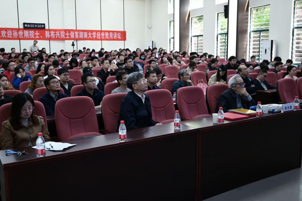 教授孙世刚和中国科学院院士、中国科学院化学研究所研究员韩布兴做客湖南大学经世致用讲坛,在新化工楼D区报告厅向全校师生作主题报告。副校长蒋健晖,中国科学院院士俞汝勤出席。