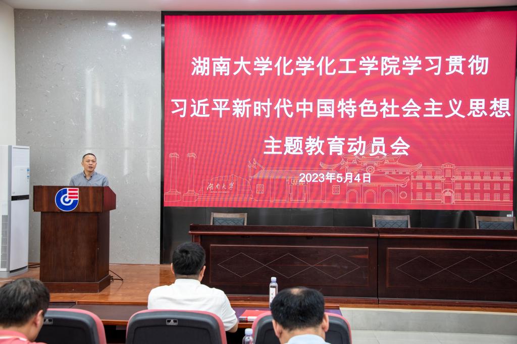 5月4日下午,学院学习贯彻习近平新时代中国特色社会主义思想主题教育动员大会在学院报告厅召开。会议深入学习贯彻习近平总书记在学习贯彻习近平新时代中国特色社会主义思想主题教育工作会议上的重要讲话精神,按照党中央、教育部党组和湖南省委及学校党委的统一部署,对全院开展主题教育进行动员部署。