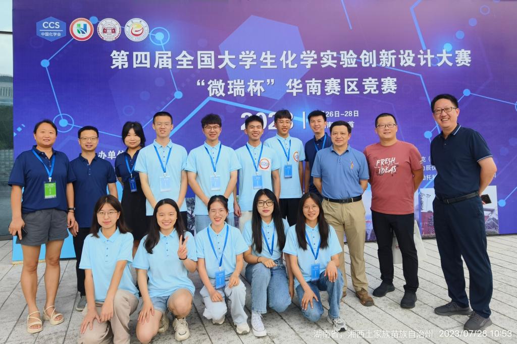 近日,由湖南大学和吉首大学承办的2023年第四届全国大学生化学实验创新设计大赛“微瑞杯”华南赛区竞赛落下帷幕,我校三支参赛队均取得优异成绩。唐春燕、栗艺菲、骆弟凤(指导教师:刘浩然、李昆)获得新创实验赛道一等奖;文密、秦冠岩、贾宝硕(指导教师:王童、刘剑波)获得改进实验赛道一等奖;方琪珑、李懿绮、生江伊徽(指导教师:袁荃、谈洁)获得科普实验赛道一等奖,并将以小组第一名的身份代表湖南大学参加于8月下旬进行的全国总决赛。