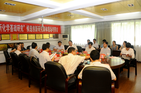 院长蒋健晖教授、书记王玉枝教授、杨荣华教授以及群体主要成员和分析化学学科研究人员。群体学术带头人谭蔚泓教授向考察组详细汇报了群体的基本情况和今后研究计划。之后,考察组与群体主要骨干、相关管理部门负责人进行了座谈,考察了群体所依托的化学生物传感与计量学国家重点实验室的工作环境和技术支撑情况。