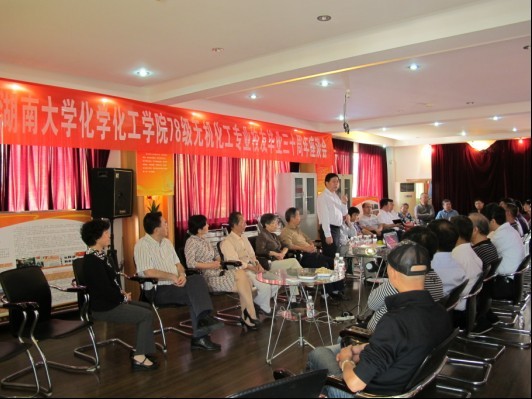 刘书记在讲话中代表学校对七八级无机化工校友毕业30年回到母校表示热烈欢迎。他向校友介绍了我校近十年来快速发展取得的成就和招生、就业工作赢得的社会赞誉,并如数家珍地介绍了我校国家工程技术研究中心、国家级重点实验室,特别是化工学院近年来取得的国家级重大科研成果情况。他指出,这些成绩的取得得益于我校的办学理念,得益于我校实施大学生个性化培养、个人成长导师制等一系列非常好的大学生培养措施。刘书记亲切地对校友们说,你们是湖南大学的毕业生,一辈子就打上了湖南大学的烙印,校友的心紧紧地和学校连在一起,你们走得越远就越觉得在校时光的珍贵,学生与学校的关系是永远割不断的,师生情、同学情是永恒的,希望校友们经常返校看看学校的变化。