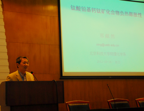 应国家重点实验室邀请,2012年10月14日,教育部****特聘教授,国家****科学基金获得者,北京科技大学物理化学系邢献然教授来新葡京娱乐 讲学,作了题为“铅基负热膨胀化合物的合成和性能研究”的学术报告,受到了广大师生的热烈欢迎,俞汝勤院士主持学术报告。