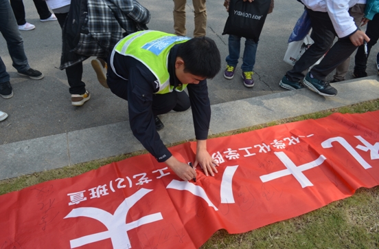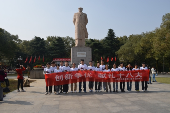 首先工二的全体同学在前进楼展开了以“:知党史,听红歌,看党代会,谈学风建设,宣扬党精神,响应十八大”为主题的室内班会。在团支书发表讲话后,首先给同学们放映幻灯片,介绍中共党史大事件,并在期间穿插红歌,让同学们说出歌曲的名字以及所描写的主题和歌曲的年代,同学们都积极地参与其中,表现非常良好。接下来是全体同学一起观看中国共产党十八次全国代表大会开幕式,聆听胡锦涛总书记代表十七届中央委员会的报告。让同学们了解了党的十七大以来5年的工作,回顾34年来改革开放的伟大历史进程和宝贵经验。然后从国家的经济,文化建设方面缩小化到班级的学风建设。学风建设是班级的灵魂, 是建设优良学习氛围、培养集体的凝聚精神的重要保障,工二班长就此向同学们提出学习方案和要求。室内环节就此结束,在班长的带领下,同学们有序的来到东方红广场拉起了“创新争优,献礼十八大”的宣传横幅并向校园内的同学和游客分发十八大宣传单,询问路人对十八大的了解程度,很多感兴趣的路人在横幅上签上了名字表示愿意今后更加的关注党代会和党建工作,还有幸得到交警叔叔的积极参与。最后团支书和班长就这次主题团日活动做了总结,打扫整理了活动现场。