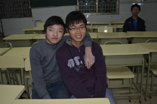 工艺二班的特色活动是给流浪儿童上课,班助巩来江也积极参与其中。到了课堂上,班助做到了一个流浪儿童的身边,拿着之前准备好的教材,认真细致的为他讲述了中国地理。性格叛逆的流浪儿童此时聚精会神的做在课桌前,没有理会身边的吵闹,只是一心的听着工二班助生动详细的讲解着我们的祖国,讲课结束后,只见教材已经被班助标注的满满当当,使流浪儿童受益匪浅,两人也像哥们似的搭肩留影。
