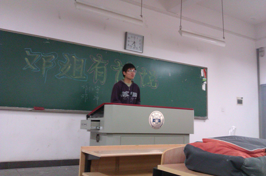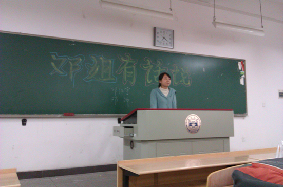 巩来江班助为了能更好的给同学们关于如何在大学里生存的建议,邀请了两位保研到湖大的学姐来向我们介绍她们的大学生活指南,30分钟轻松愉快的谈话一眨眼就过去了,班助则充当了主持人的角色,期间也像大家简要介绍了一下他的计划,在最后像大家展示了他的班助聘书,如假包换!巩来江班助为了让我们多多接触优秀学姐学长,在以后每周末,都会在集体自习的前30分钟邀请那些可爱的学姐学长们来与我们进行交流,解决我们的困难,回答我们的问题,“前辈有话说”第一期就这样愉快的结束了,期待第二期!