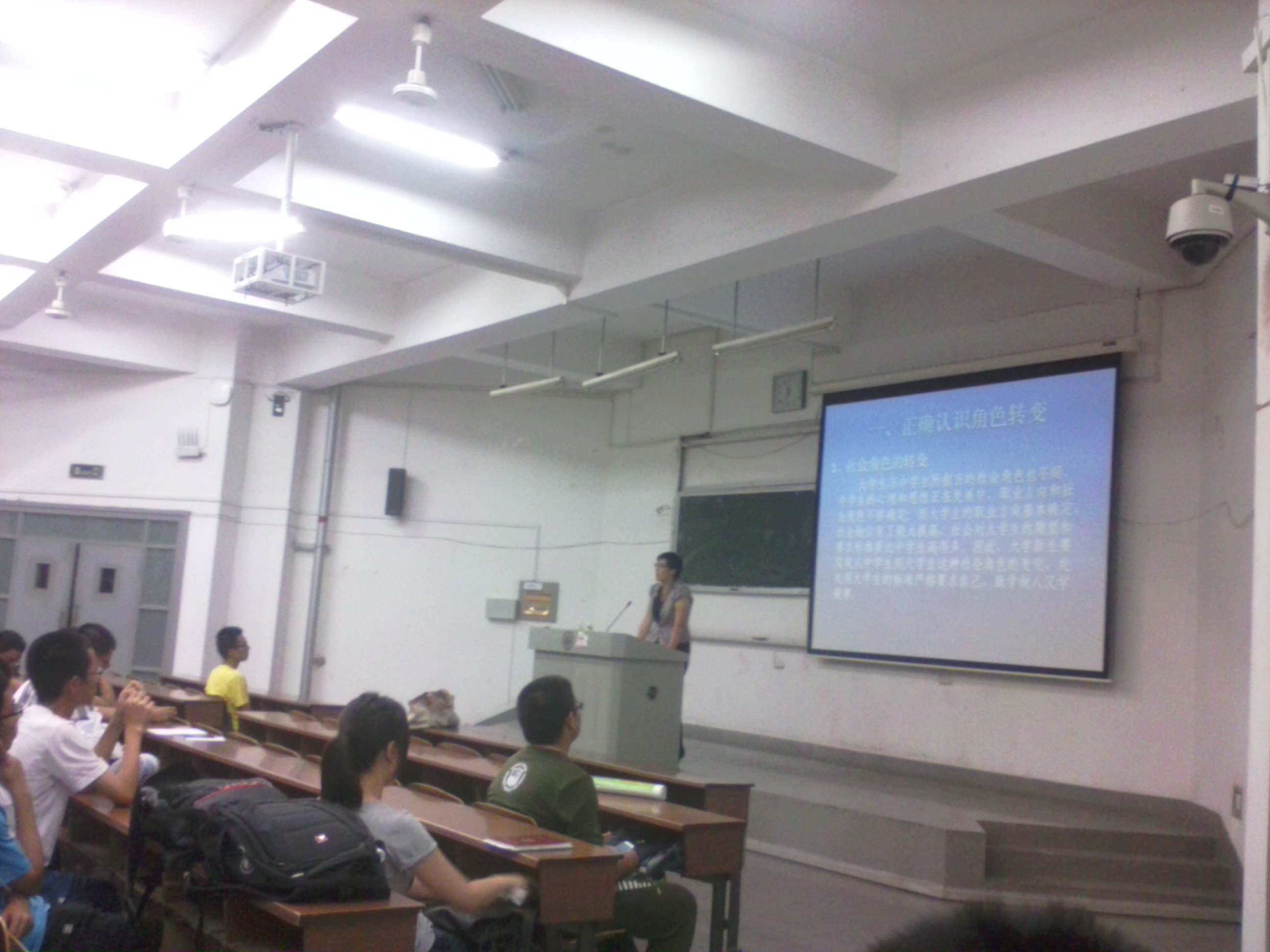 随后,为了能让大家更好地把握大学生活,陈书记又从三个大方面教授了我们“大学之道”。一:正确认识角色转变。它包含社会角色、思维方式和生活方式的转变,要求我们在处理问题时应辩证全面、深思熟虑,要有道德和法制观念、不能盲目冲动、感情用事,要培养独立生活的能力并积极参加学校和班级组织的活动。二:有效进行自我评价,建立良好的人际关系。要做到要学、要玩、要观察、要思考,而不要妄自尊大、不要锋芒毕露、不要勾心斗角、不要为情所困。三:主动适应新环境。养成好的生活习惯,合理安排时间,自觉遵守学校的规章制度,积极适应大学的学习生活。