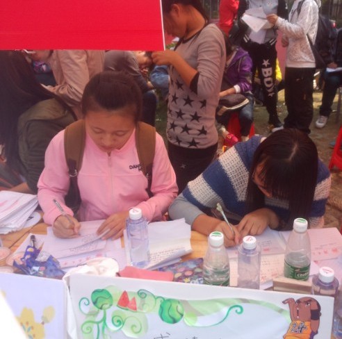 在方队表演结束后,志愿者与新葡京娱乐的同学们开始着手准备为运动员加油打气的加油词,他们时而紧咬笔杆时而低头沉思,就这样,在志愿者们的共同努力下,化工院的加油词不仅在数量上占了很大优势,同时质量上也有所提升,播音员口中化工院的名字也时常回荡在运动场上空。