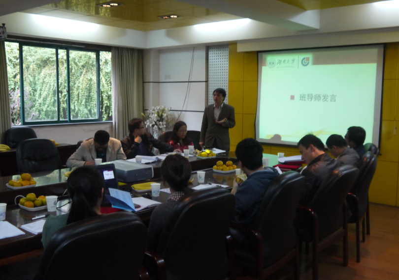 党委副书记陈义红老师对学校班主任制度与学院班导师工作开展情况进行了简单介绍与总结。随后,蒋院长和旷院长为2013级学院新聘班导师颁发聘书,并与受聘班导师一一握手表示祝贺。辅导员李辰老师,陈晓晖老师以及赵春先老师分别对三个年级的情况做了简短汇报,对各年级上年度学业成绩,各年级建设情况以及各年级学生所存在的问题进行了梳理和剖析。