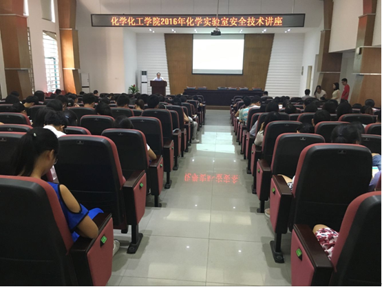 下午学院许峰老师对学生进行实验室安全技术讲座。许老师结合自身多年在实验室安全管理方面丰富的经验,从实验室安全管理理论、实验室安全通则、仪器设备安全、化学品的管理及一般操作规范、化学废弃物及环境安全、生物安全及防护以及实验室事故产生的原因及应急处理等几个方面展开了详尽的讲解,并要求实验操作者严格遵守实验操作规程,并熟练掌握正确的消防灭火方法,才能更好地提高实验室的安全。