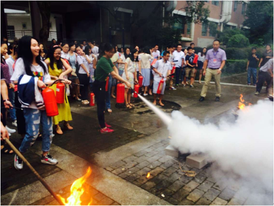 上午湖南省消防协会教官对学生进行消防器材现场实物操作培训,并做详尽讲解,让每位同学亲自操作,做出点评,指出其中不规范的地方。亲身经历让同学们更加了解灭火方法,临“火”不乱。