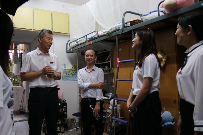 党委书记王玉枝,院长张晓兵、湖南大学学工部副部长龚翔、学院党委副书记范媛吉和学校园区相关领导、学院学工办全体老师深入学生宿舍看望毕业生,给他们送去温暖问候。