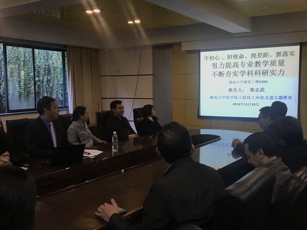 党支部全体同志在学院新楼D区204会议室开展了党政学习交流。会上,副院长梁志武教授作了《守初心、担使命、找差距、抓落实-努力提高专业教学质量,不断夯实学科科研实力》的专题党课。梁志武带领大家一起回顾了学院发展历史,以及化工应化专业的发展现状,并指出正是由于一代代老师和前辈们 “不忘初心”的努力和“牢记使命”的责任感,才有了我们现在新葡京娱乐