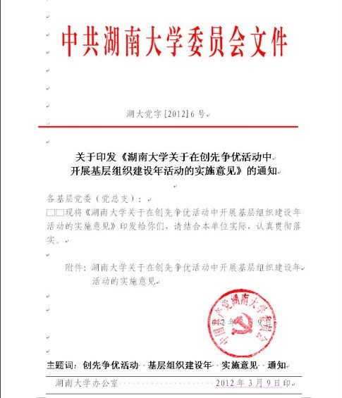 湖南大学创先争优领导小组办公室