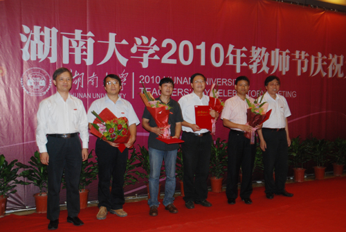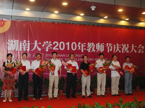 “没有轰轰烈烈,没有叱咤风云,在这个平凡的岗位上,我收获了自己的事业,由我主编的数本著作是对学校最好的献礼。”面对眼前的鲜花和荣誉,获奖教师代表土木学院副教授袁果深情地讲述了在湖大24年的任教经历,父亲的耳濡目染让她立志要在湖大这片土壤上,为祖国浇灌出最美丽的花朵。
