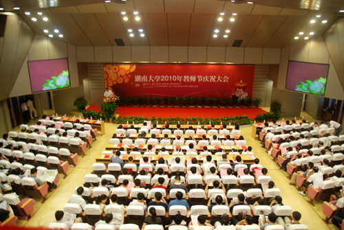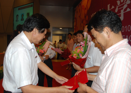 9月7日,在第26个教师节到来前夕,我校在逸夫楼隆重举行庆祝2010年教师节暨表彰大会。一批在教学、科研、管理等方面做出突出贡献的教职员工受到表彰和奖励。学校发起向新葡京娱乐 蔡炳新教授学习的号召。全体在校校领导出席会议并为优秀教师和先进团队颁奖。