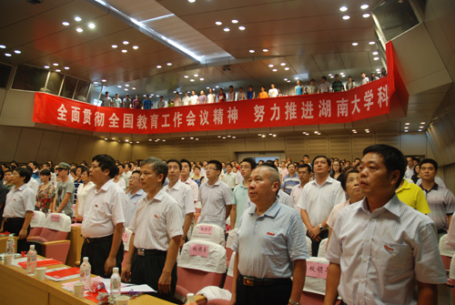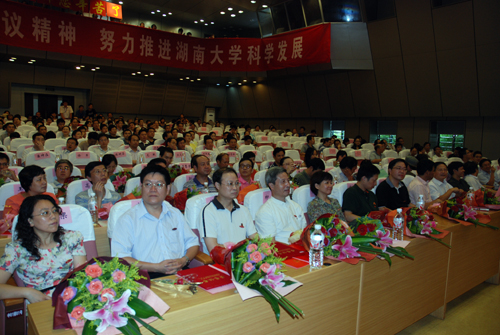 会上,校长钟志华首先代表学校党委和行政对全体教职员工致以节日的问候,并对受到表彰的优秀教师和先进团队表示祝贺。他指出,在全校教职员工的不懈努力下,我校人才培养质量稳步提高,学科体系不断完善,科研实力明显增强,学术声誉与社会影响日益扩大,学校综合实力迈上新台阶。他强调,要牢记大学的核心使命,坚持以培养拔尖创新人才为根本,以提高质量为核心,以改革创新为动力,推动学校各项事业在新的历史起点上科学发展。教育大计,教师为本,要用爱与责任去支持全校教师的工作,在追求学校的可持续发展的同时,注重教师事业与身心的可持续发展。同时,他希望全校教职员工对受到表彰的同志学习,用自己的高尚的人格魅力和深厚的学识教育感染学生,做学生健康成长的指导者和引路人。