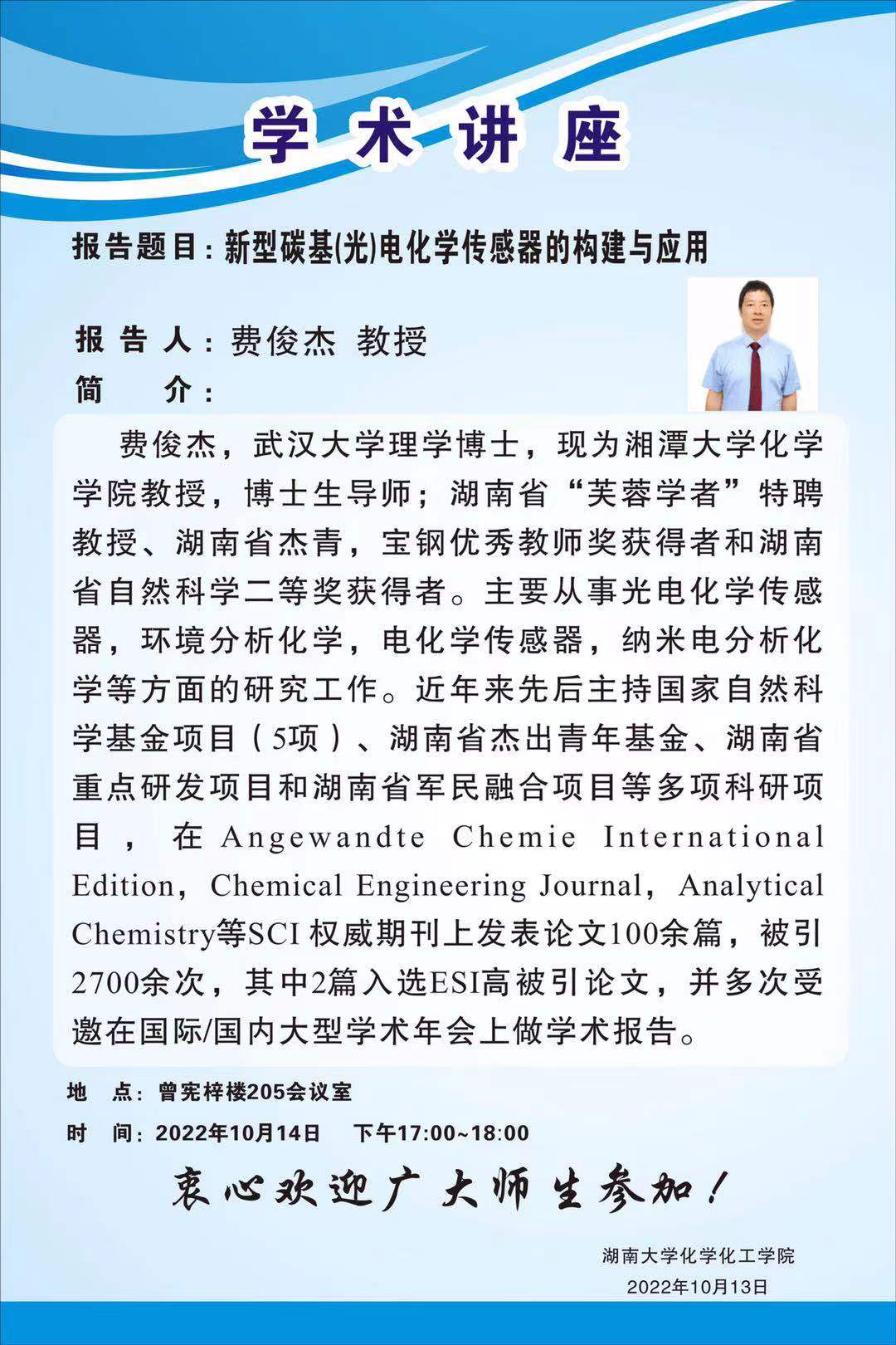 2022年10月14日湘潭大学费俊杰教授学术报告会