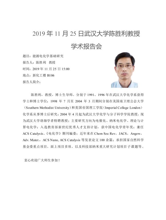 2019年11月25日武汉大学陈胜利教授学术报告会