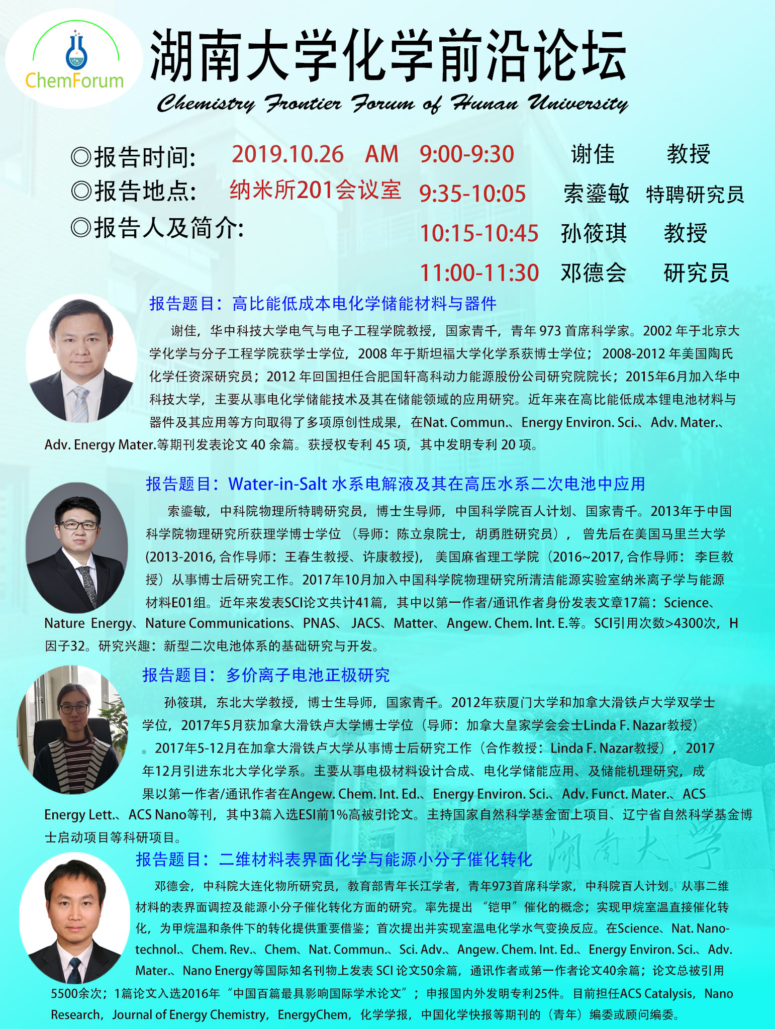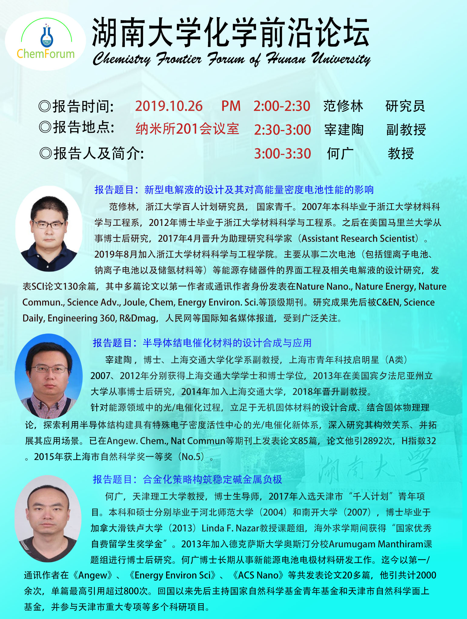 2019年10月26日湖南大学化学前沿论坛