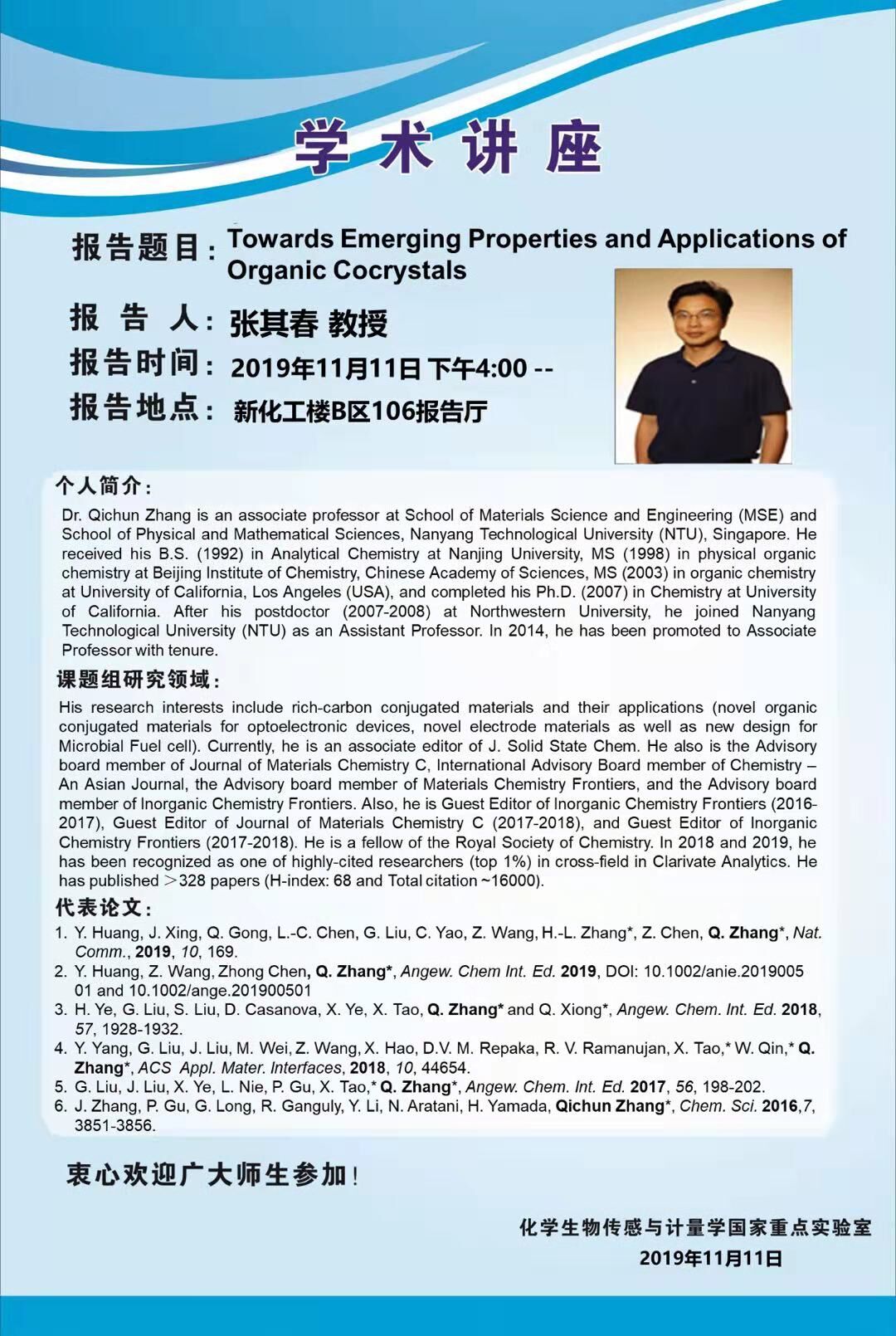 2019年11月11日新加坡南洋理工大学张其春教授学术报告会