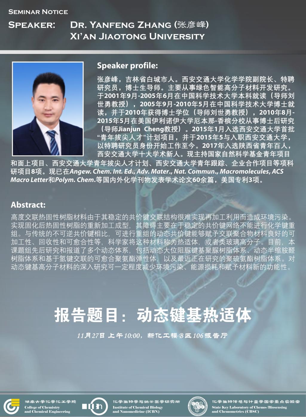 2020年11月17日西安交通大学张彦峰研究员学术报告会