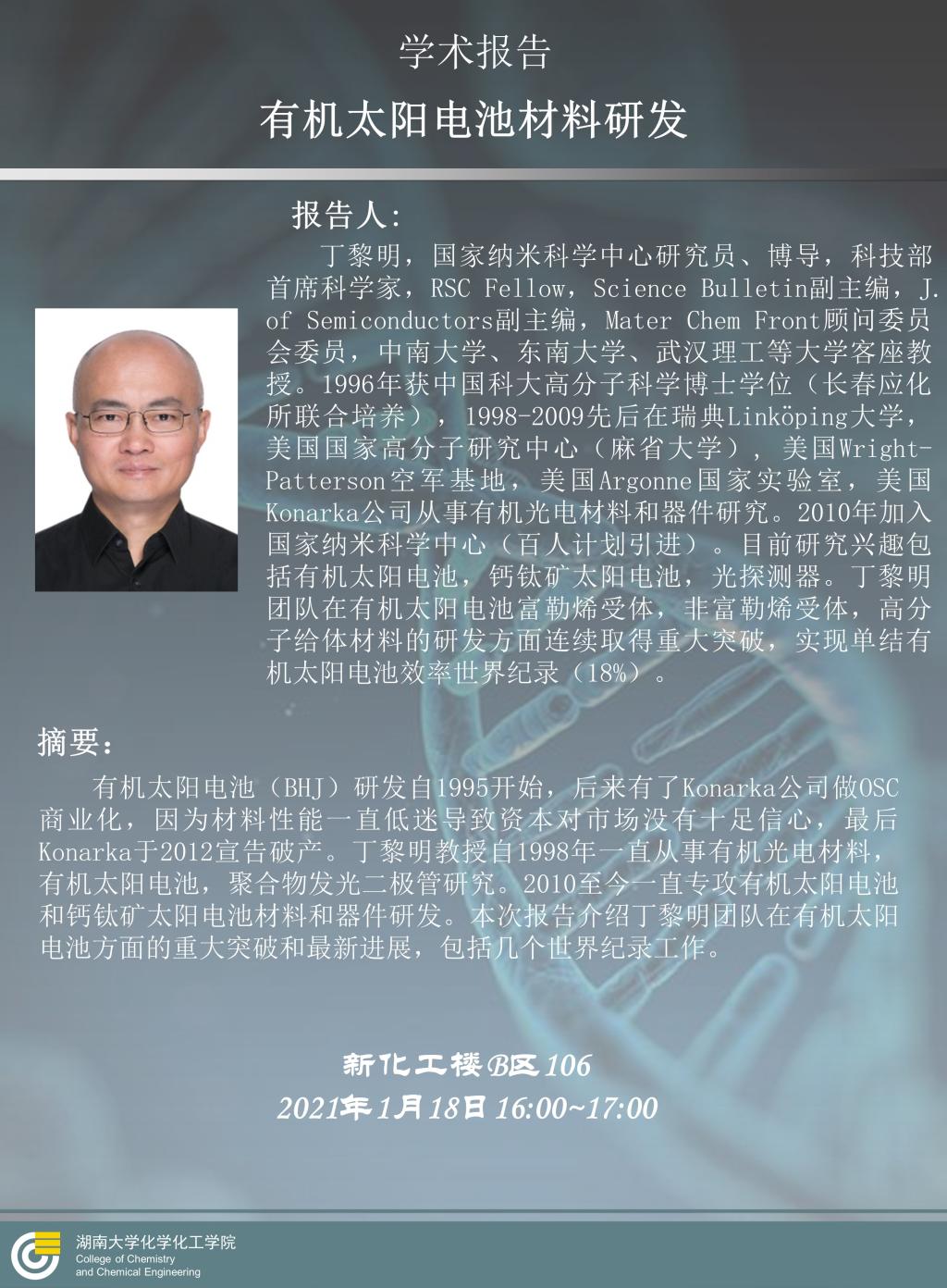 2021年1月18日国家纳米科学中心丁黎明研究员学术报告会