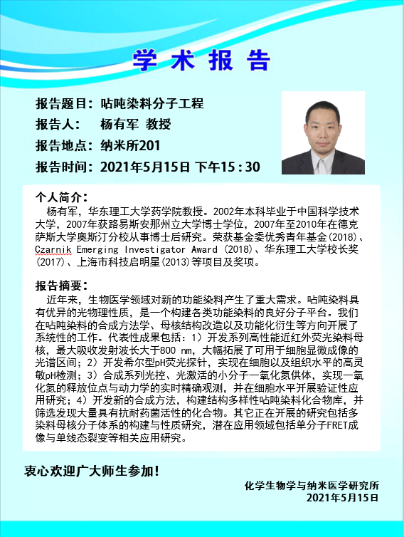 2021年5月15日化工理工大学杨有军教授学术报告会